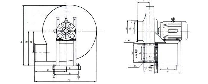 結(jié)構(gòu)特點: №.4-6.3主要由葉輪、機殼、進風口、支架等組成;№.7.1-16