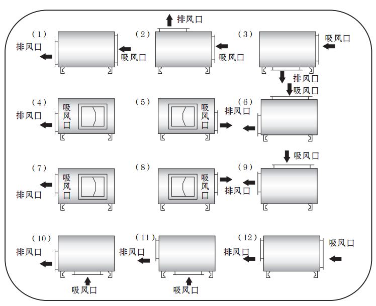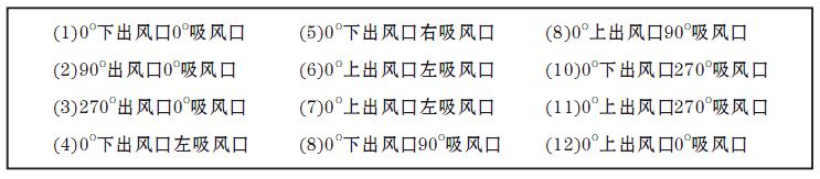 注:訂貨時還應(yīng)注明風(fēng)機(jī)的進(jìn)出風(fēng)口位置編號,出風(fēng)口位置編號,詳見風(fēng)柜進(jìn)、出風(fēng)口對照表。