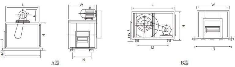 A型:電機(jī)外置式,該型風(fēng)機(jī)可作為消防排煙及通風(fēng)換氣用。